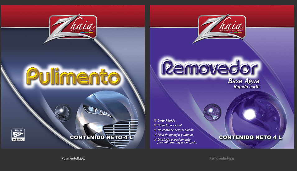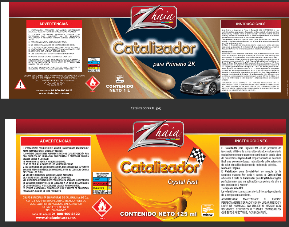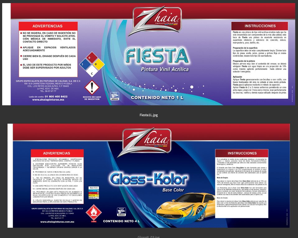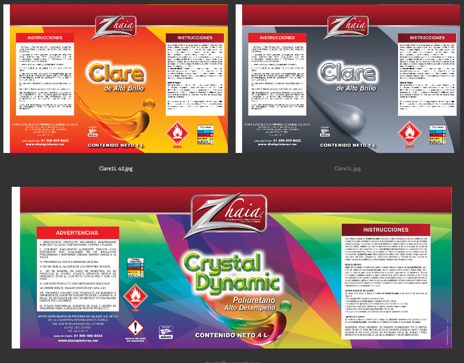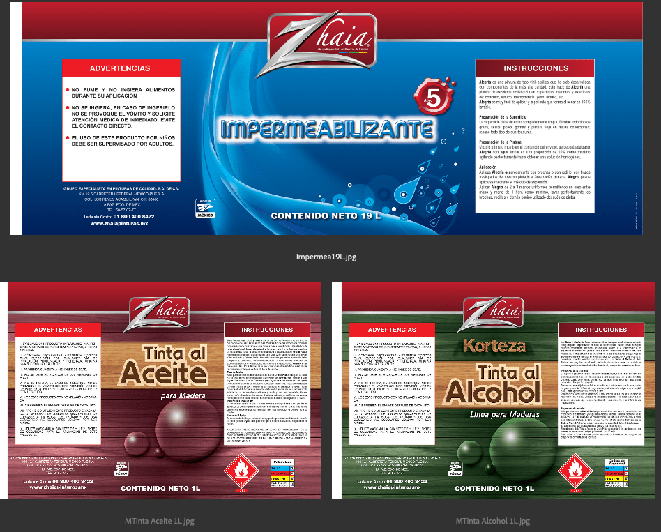 Diseño de etiquetas en diferentes presentaciones. 1L, 4L, 19L con separación de colores.