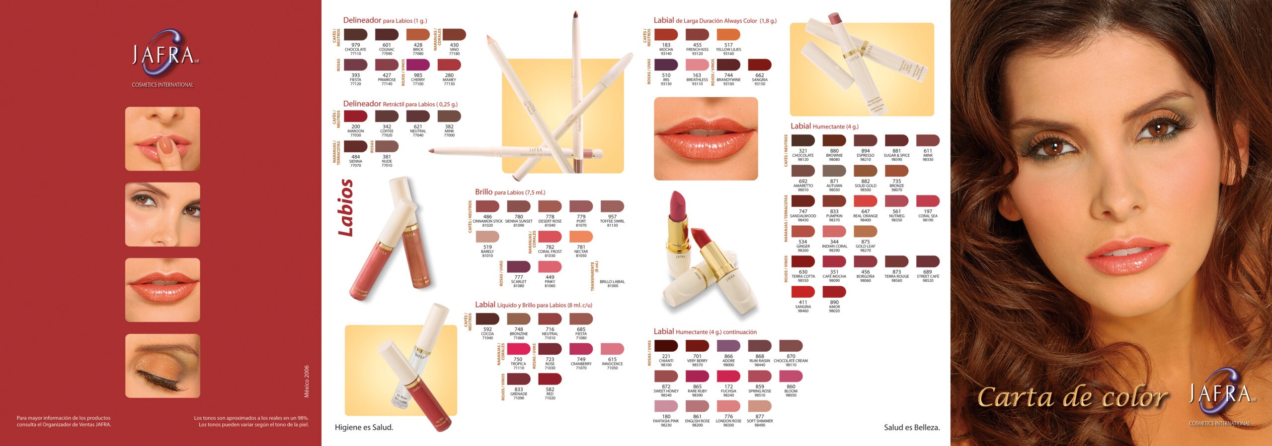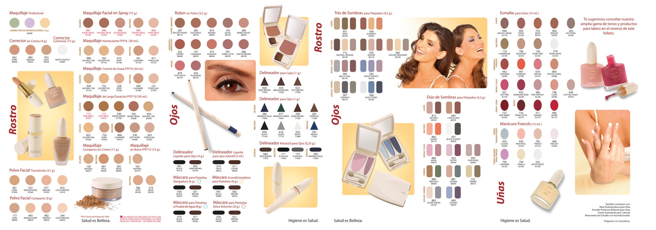 Guía de Color para cosméticos, diseño hecho por mi y fotos enviadas por el cliente; retoque fotográfico, fotos de productos y diagramación de spots de color, siempre pensando en los siguientes procesos…